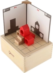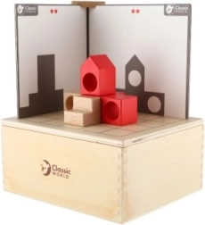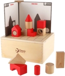 Set je osmi61ljen za djecu od 3 godine pa su svi dijelovi sigurno spremljeni u drvenoj kutiji dimenzija 18,5 x 16 x 9 cm. Djeca mogu poku61ati sastaviti blokove prema karticama i uskladiti obje strane, 0Dime vje7Ebaju logiku i spretnost.