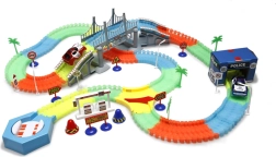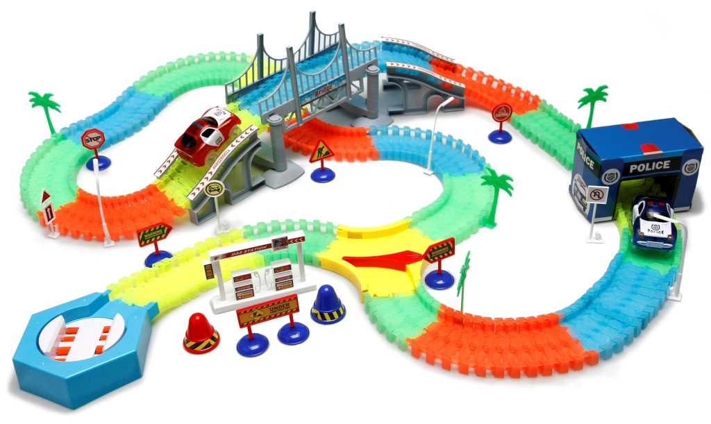 Svjetleća autodruma s 220 fleksibilnih dijelova donosi kreativnu gradnju i uzbudljive utrke čak i u mraku. Dijelove jednostavno spojite, stvorite ravnine, zavoje i premostljenje te u trenu promijenite cijelu rutu.