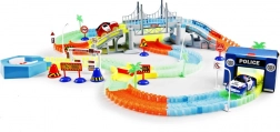 Dio paketa je LED autić (crveni ili plavi) koji pri vožnji svijetli i ostavlja upečatljiv svjetlosni efekt. Igraće okruženje upotpunjuju policijska postaja, znakovi i benzinska pumpa, pa djeca mogu razvijati maštu i pripovjednu igru.