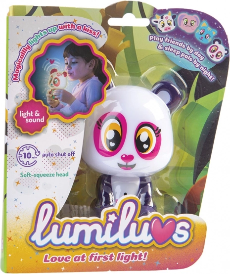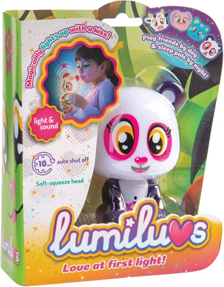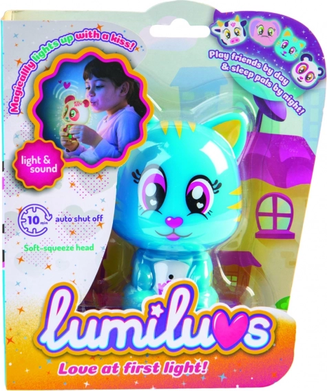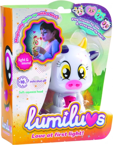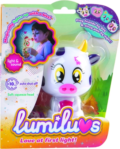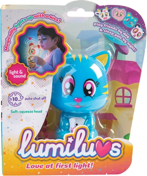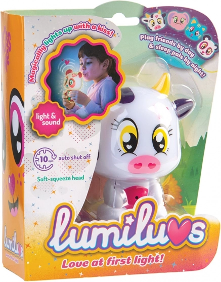 Životinjica Lumiluvs svijetli i brblja kada puhnete na trbuščić i usta.