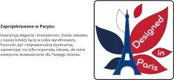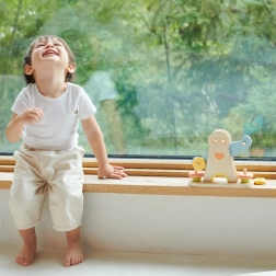 Igračka je izrađena od kvalitetnog prirodnog drva s glatkim rubovima i bojama na bazi vode. Pastelni elementi privlačni su djeci i ujedno bezvremenski.