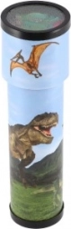 Realistični motivi T-REX-a i drugih prapovijesnih stvorenja privlače na prvi pogled, dok pogled unutra stvara beskrajne geometrijske uzorke od šarenih odsjaja. Kaleidoskop prirodno i kroz igru razvija vizualnu percepciju, koncentraciju i maštu djece.