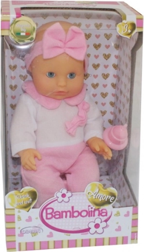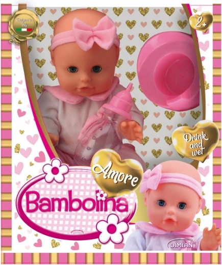 Lutka Bambolina izgleda kao pravo bebašce koje pije i piški. U kompletu su ružičasta kahlica i bočica za hranjenje, koje potiču dječju maštu i postaju pratnja u igri.