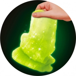 Napravite vlastiti slajm. Usipajte prašak u čašicu, dodajte šljokice i figuricu. Ulijte vodu do označene crte, zatvorite čašicu i smjesu dobro protresite. Zatim otvorite čašicu i pričekajte pet minuta. Slajm je gotov. Kombinirajte boje, dodajte sjaj i uživajte u pravoj zabavi sa slajmom. Svijetli u mraku. Za djecu od 6 godina.
