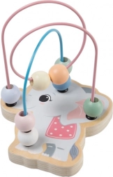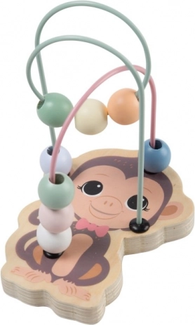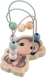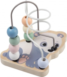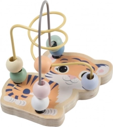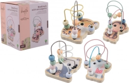 Ovaj drveni labirint s perlicama idealna je igračka za prvo istraživanje svijeta. Šarene perlice lako klize po metalnim petljama i razvijaju finu motoriku, strpljenje i koncentraciju. Veseli dizajn sa životinjama privlači pažnju na prvi pogled.