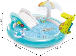 Ovaj bazen marke INTEX uključuje igračke elemente poput nafukave patkice i ribarskog kantuna, koji potiču zabavu i kreativnost djece dok se igraju u vodi. Također je dostupan i nafukavi volan, što daje djeci mogućnost igranja različitih igara.