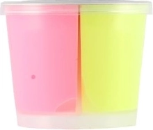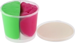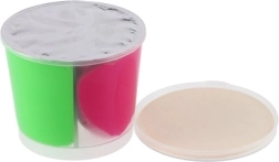 Čašica dimenzija 7 × 6 × 7 cm čuva masu dulje svježom i olakšava spremanje. Miks triju izražajnih boja potiče na eksperimentiranje, miješanje i zajedničku igru.