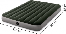 Nafukovanje madrac Intex sa svojim dimenzijama 191x137x25 cm idealan je za dvije osobe. Izrađen je od čvrstog PVC materijala, a gornji dio je prekriven vodootpornim velurnim materijalom ugodnim na dodir.