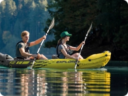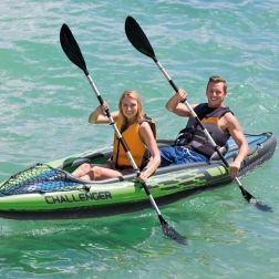 Veslo za kajak duljine 2,18 m. Aluminijska drška s dvije plastične peraje. 3 pozicije veličine.