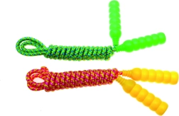 Ovo dječje uže za preskakanje napravljeno je od kvalitetnih materijala koji osiguravaju njegovu trajnost i otpornost. Duljina od 2,1 metar je optimalna za djecu, što podržava njihovu okretnost i fizičku spremnost. Dizajnirano je uzimajući u obzir sigurnost i udobnost malih korisnika.