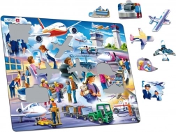 Uronite u svijet pilota, stjuardesa i putnika uz LARSEN puzzle Zračna luka. Slika je sastavljena od nepravilnih dijelova bez klasičnih utora, što donosi svjež izazov te potiče maštu i finu motoriku djece. Zahvaljujući čvrstom rubu i izvedbi na ploči, slaganje je lakše, a spremanje bez brige.