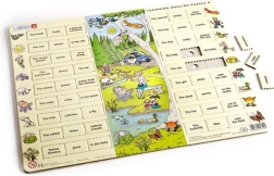 Larsen puzzle engleski 'U šumi' idealan je za djecu koja se žele naučiti sastavljati složenije engleske rečenice. Zahvaljujući slikama na rubu, uz koje pridružujete dijelove i stvarate rečenice, djeca se nenametljivo uključuju u učenje. Naprednija djeca tako mogu isprobati vlastite ideje i poboljšavati svoj engleski rječnik.