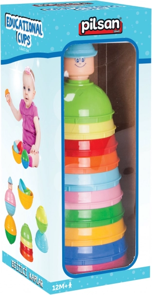 Ova konstrukcijska igračka sadrži 10 šarenih čaša, koje se mogu slagati u oblik piramide. Izvrsna je pomoć za djecu koja se uče koordinaciji ruku i očiju, prepoznavanju boja i rješavanju problema. Visina cijele piramide je 28 cm, što je idealna veličina za malu djecu.