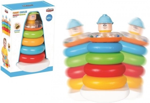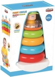 Otkrijte zabavu i učenje za svoju djecu sa slagalicom koja stimulira njihovu koordinaciju ruku i očiju. Ovaj šareni set uključuje pet raznobojnih krugova koji se lako slažu na bijelu bazu, i nasmijanog plišana s plavom kapicom na vrhu. Piramida visoka 23 cm dizajnirana je kako bi pomogla djeci razviti motoričke vještine i istovremeno pružila puno zabave.