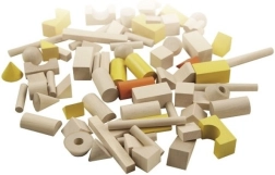 Drvene kocke Detoa odličan su izbor za djecu koja vole stvarati i slagati. Ovaj set sadrži razne oblike poput klasičnih kocki, kvadara, valjaka te netipičnih štapića, piramida i drugih zanimljivih oblika, uključujući i neke probušene. Zahvaljujući živim bojama i mnoštvu mogućnosti, ovi dijelovi savršeni su za razvoj dječje kreativnosti i motorike.