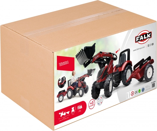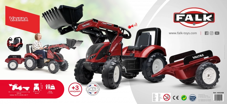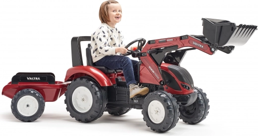 Pedalni traktor VALTRA marke FALK razveselit će svakog malog farmera. Nudi funkcionalnu prednju kašiku za utovar, odvojivu prikolicu za prijevoz igračaka i trubu na volanu. Zahvaljujući lančanom pogonu, stabilnoj konstrukciji i izdržljivim plastičnim kotačima idealan je za igru na otvorenom i razvoj motorike i koordinacije.