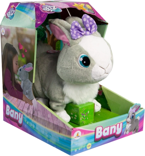 Mekano plišano izvođenje, nježan dodir i očaravajući izgled s ljubičastom mašnom čine BANY idealnim partnerom za igru i maženje. Interaktivni zeko potiče maštu, emocije i prve komunikacijske vještine djece.