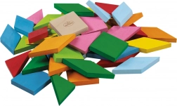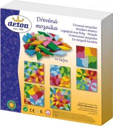 U pakiranju se nalazi 49 drvenih kamenčića u dvjema veličinama (3 × 3 cm i 3 × 5,5 cm) te 4 papirnata predloška mozaika za lakši početak i inspiraciju. Kompaktno pakiranje 20 × 20 × 3,7 cm olakšava spremanje i prenošenje. Žive boje privlače pozornost i olakšavaju učenje boja i oblika.