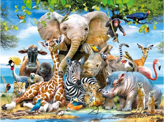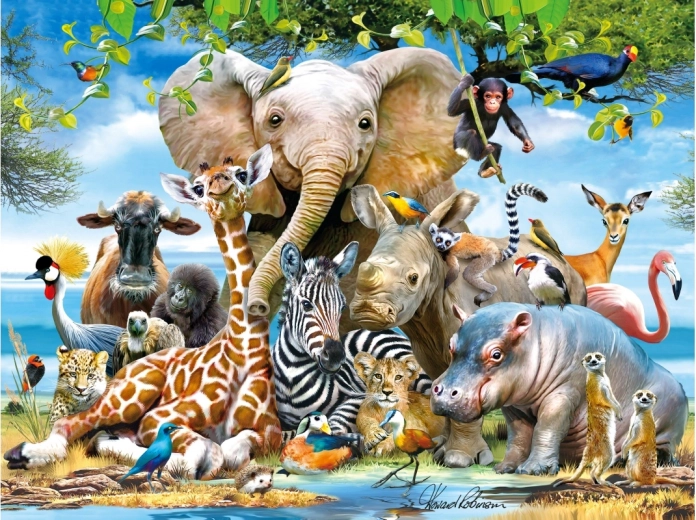 Otkrijte fascinantan svijet slaganja s 3D puzzlama Afrički osmijeh. Poseban lentikularni tisak stvara izražen 3D optički efekt koji donosi realističan osjećaj dubine i oživljava motiv afričke faune. Gotova slika postaje lijepa dekoracija dječje sobe, a ujedno razvija strpljenje, koncentraciju i finu motoriku.