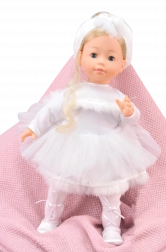 Slatka lutka Bambolina Molly balerina razveselit će svaku malu ljubiteljicu plesa. Ima trepćuće oči, dugu kosu i nosi prekrasnu baletnu haljinicu. Zna reproducirati 3 pjesmice, a zahvaljujući visini od 40 cm odlično pristaje i manjim rukama. Prikladna od 3 godine, baterije LR44 su uključene u pakiranje.