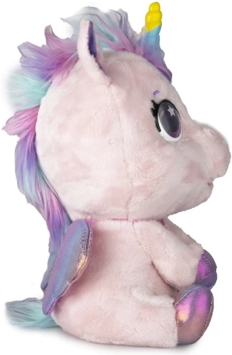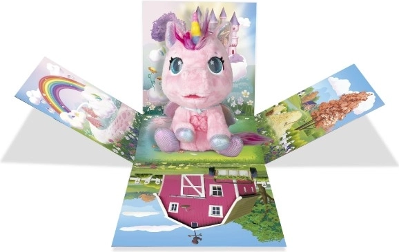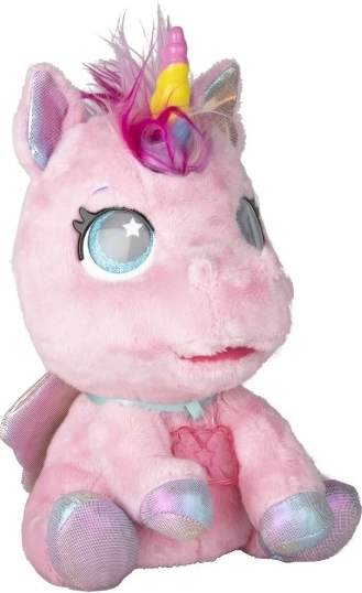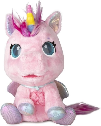 Interaktivni plišani poni koji će postati vaš najdraži prijatelj. Reagira na dodire i brigu s više od 30 zvukova i akcija – od radosnog rzanja do nježnog predenja. Zahvaljujući postupnoj preobrazbi u tri čarobne faze promatrat ćete kako mu raste šareni rog i kako se iz ponija pretvara u prekrasnog jednoroga.