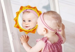 - Multisenzorna zabava: boje, teksture, zvukovi i zrcalo za razvoj vida, dodira i sluha.