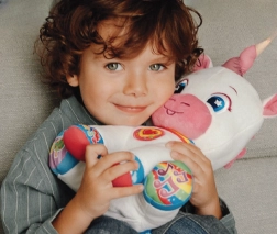 Ovaj mekani interaktivni jednorog savršen je pratitelj za prvo otkrivanje svijeta. Djeca će zavoljeti mekane zagrljaje, svjetlucajuće obraščiće i rog te šarene tipke na šapicama koje na pritisak reagiraju veselim zvukovima, pjesmicama i rimama. Igračka govori češki i može se prebaciti i na slovački.
