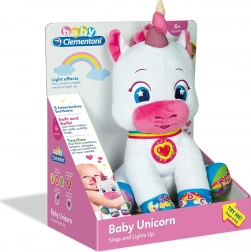 Slatki jednorog marke BABY CLEMENTONI donosi učenje kroz igru za najmlađe. Ima 5 interaktivnih tipki za učenje brojeva, slova, oblika i boja, govori češki (može se prebaciti na slovački), svira pjesmice i rime, a njegova obraščića i rog svijetle. Mekani pliš potiče taktilnu i slušnu percepciju te prve logičke asocijacije.