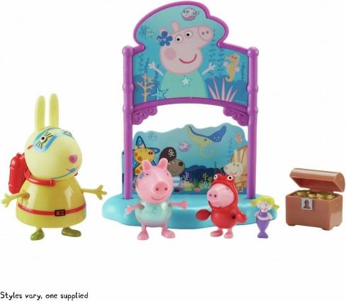 Uronite u svijet mašte s igračim setom Praščica Peppa – Svijet pod vodom. Djeca mogu stvarati vlastite priče s Peppom, Georgeom i gospođom Zec, koji su odjeveni i opremljeni u duhu morskih avantura. Set potiče razvoj mašte, finu motoriku i samostalnu igru.