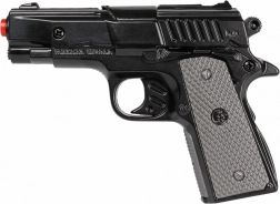 Uđite u svijet akcijskih igara s kvalitetnim policijskim pištoljem na kapisle koji oduševljava metalnim tijelom, udobnim hvatom i kapacitetom od 8 hitaca. Zahvaljujući kompaktnim dimenzijama 19 × 10,5 cm odlično leži i u manjim dječjim rukama te potiče maštu pri igri policajaca i detektiva.