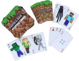 Uživajte u omiljenim kartaškim igrama s motivom MINECRAFT. Stilizirane igraće karte u metalnoj kutijici izvrsne su za obožavatelje, igrače i za putovanja. Sadrži 54 karte uključujući 2 džokera i idealne su za kvartet, remi, blackjack, poker, Crnog Petra i pasijans.
