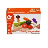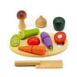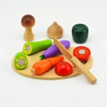 Ovaj drveni set za rezanje je savršena igračka za male kuhare. Sadrži 16 realističnih komada povrća koje djeca mogu rezati pomoću drvenog noža i daske.