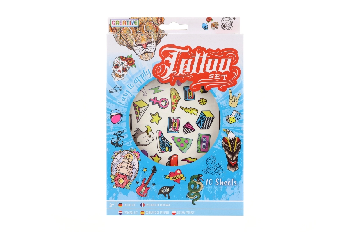 Otkrijte svoju kreativnu stranu s ovim tetovažnim setom, koji sadrži 10 listova punih uzbudljivih tetovaža za djevojčice i dječake. Uživajte u laganoj aplikaciji i nezaboravnoj zabavi za djecu.