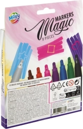 Ovaj set čarobnih flomastera s brisačem donosi djeci beskrajne mogućnosti stvaranja. Dovoljno je crtati obojenim flomasterima, a zatim prelaziti brisačem – boje će se promijeniti i nastat će originalni uzorci, linije i naglašavanja. Savršeno za školske projekte, bojanke i kućno stvaranje.
