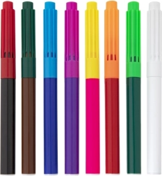 Set od 7 obojenih flomastera + 1 brisač u kompaktnom pakiranju, idealno za dom i školu.