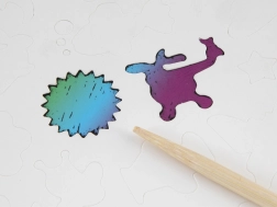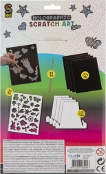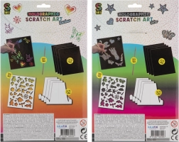 - 4 x papirna lista, 1 x olovka za grebanje, 1 x šablona, 4 x stalci