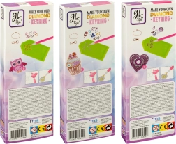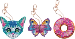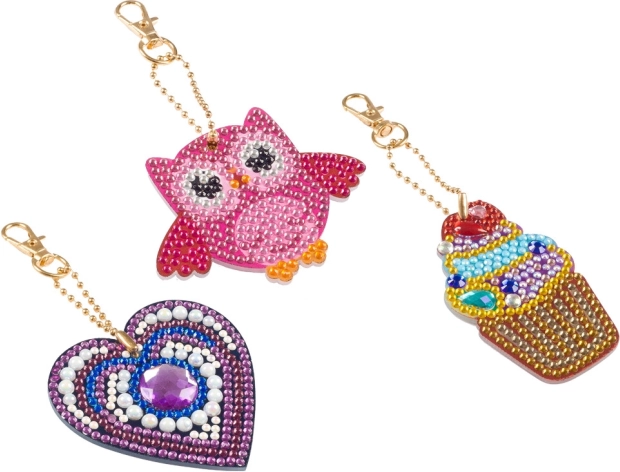 Ovaj set omogućuje izradu tri različita privjeska u obliku sove, sladoleda i srca. Svaki privjesak ukrašen je šarenim kamenčićima koji vašim ključevima daju osobit stil.