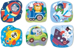 Ovaj set sadrži nekoliko malih obrisnih slagalica s motivima životinja i prijevoznih sredstava. Zahvaljujući različitom broju dijelova (2–4) djeca napreduju korak po korak, stječu sigurnost i radost uspjeha. Kompaktna dimenzija 13 × 13 cm idealna je za dom i putovanja.