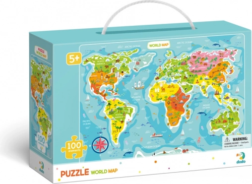 Otkrivajte svijet kroz igru s dječjom slagalicom DODO. Šarena karta svijeta s nazivima na engleskom motivira djecu na upoznavanje zemalja i kontinenata te istovremeno prirodno proširuje rječnik. Zahvaljujući 100 čvrstim dijelovima slaganje je zabavno i primjereno zahtjevno.