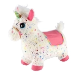 Preslatko plišano skakalo u obliku jednoroga razveselit će najmlađe od 12 mjeseci. Zahvaljujući ergonomskom obliku, visini sjedala 23 cm i mekanom, uklonjivom navlaku, skakanje je sigurno i udobno. Jednorog pritiskom na gumb ispušta zabavne zvukove, a u kompletu su i pumpica i baterije za trenutnu zabavu.