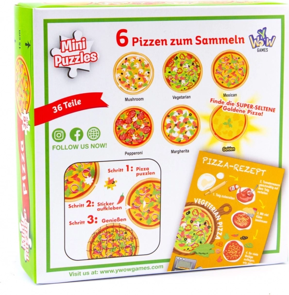 Ove originalne i zabavne puzzle s pizzom donose razne motive, poput gljivama, vegetarijanske, meksičke, s feferonima i drugih omiljenih okusa. Svako pakiranje sadrži: