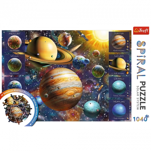 Otkrijte zabavu s originalnim slagalicama čiji dijelovi nakon sastavljanja tvore jedinstven spiralni oblik. Slagalica od 1040 dijelova s motivom sunčevog sustava nudi privlačan dizajn, kvalitetnu izradu i udobno slaganje zahvaljujući kalandriranom papiru koji smanjuje odsjaje. Idealan poklon za ljubitelje svemira i zahtjevne slagalice.