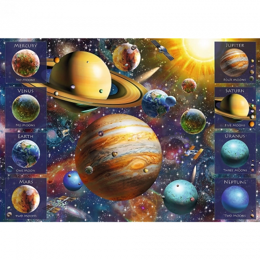 Nakon sastavljanja nastaje detaljna slika dimenzija 68,3 × 48 cm, na kojoj se ističu planeti i svemirski detalji. Slagalice su proizvedene u Poljskoj od ekoloških materijala i kvalitetnog, čvrstog kartona – radost za svakoga tko voli svemir i nekonvencionalan dizajn.