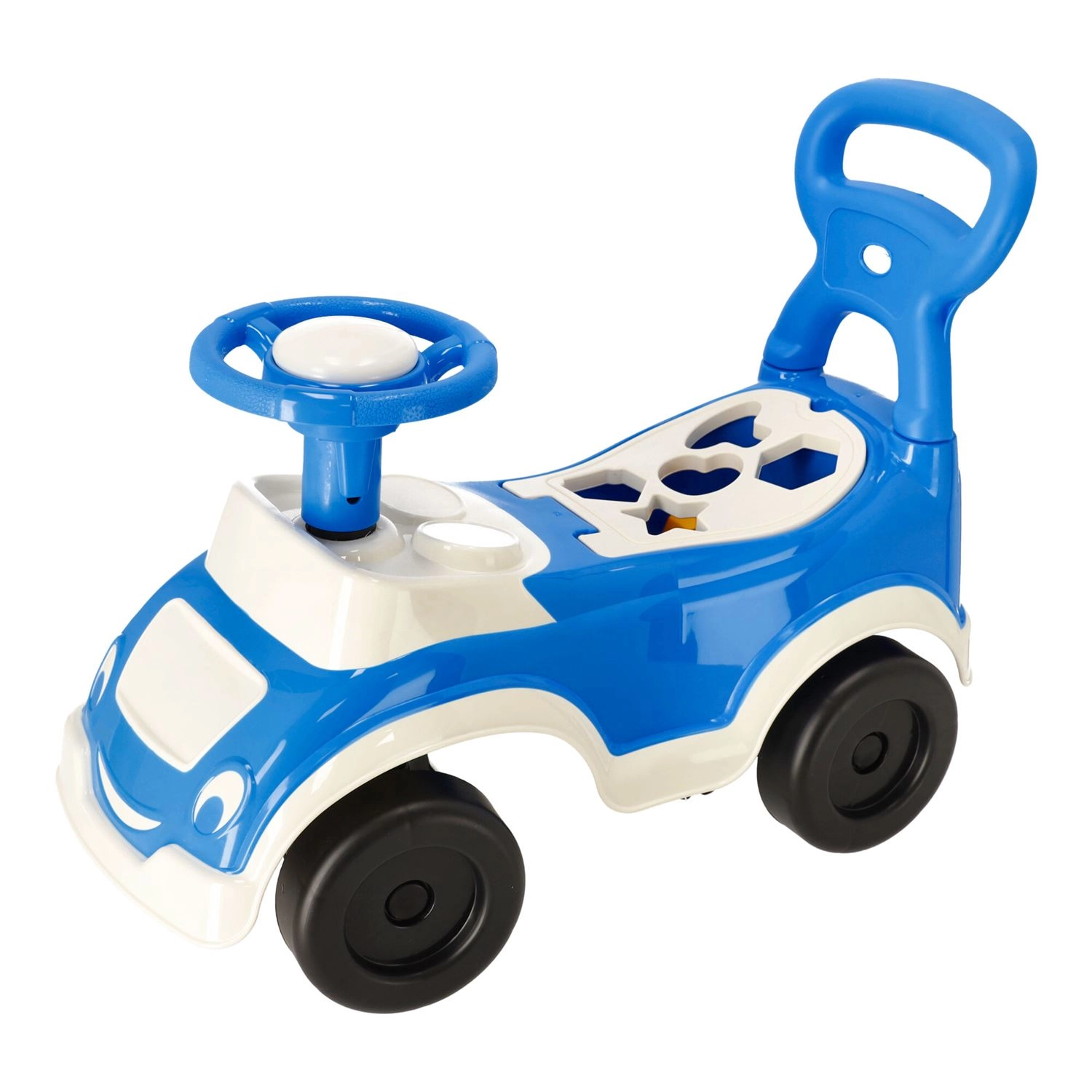 Izrađena od materijala bez kancerogenih tvari, sigurnih za dječje zdravlje. Robusna plastična konstrukcija i stabilna četiri kotača osiguravaju pouzdanost i udobnost. Pretinac ispod sjedala praktičan je za sitnice i igračke kako bi uvijek bile pri ruci.