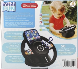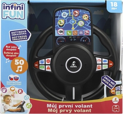 Moj prvi dječji interaktivni volan odlična je igračka za male vozače koji žele doživjeti radost „vožnje“. Djeca mogu okretati volan, dodirivati ikone na zaslonu, pokretati zvučne efekte i uživati u melodijama. Realistična truba i interaktivni elementi daju igri autentičnost.