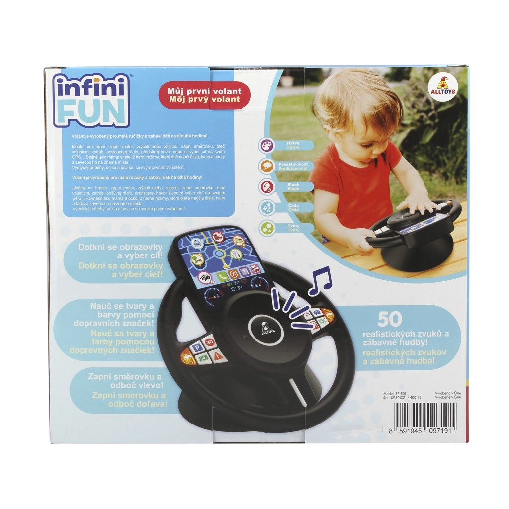 Ova igračka razvija koordinacijske sposobnosti, finu motoriku i kreativnu igru. Zahvaljujući jednostavnom upravljanju i sigurnoj izradi idealna je već od 18 mjeseci. Baterije 2× AAA već su u pakiranju, pa je volan spreman za trenutačnu upotrebu.