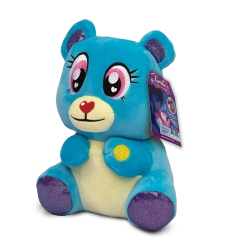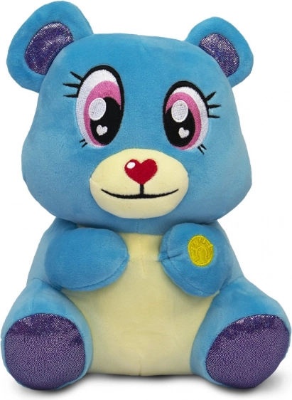 Medvjedić ima velike izvezene oči i nos u obliku srca, a uši i šapice izrađene su od svjetlucavog ljubičastog materijala.