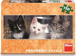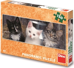 Preslatke panoramske puzzle s motivom tri mačića oduševit će male školarce i ljubitelje životinja. Sadrži 150 dijelova, a nakon slaganja stvara široku sliku idealnu za izlaganje. Puzzle su proizvedene u RH od zdravstveno ispravnog kartona te pri slaganju razvijaju prostornu maštu, bistrinu i koncentraciju.