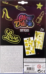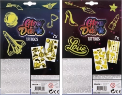 Ovaj set svjetlećih tetovaža idealan je za djevojčice koje žele dodati iskru svom stilu. Uživajte u raznim motivima dostupnim u paketu, koji uključuje dva lista tetovaža. Jednostavno izrežite, stavite na kožu, navlažite spužvom i gotovo! Korištenje je brzo i zabavno.