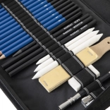 Set za skiciranje olovaka i bojica u zatvorenoj torbici idealan je za umjetnike na putovanjima. Set sadrži široku paletu olovaka i alata koji će vam pomoći razvijati vaše umjetničke vještine.